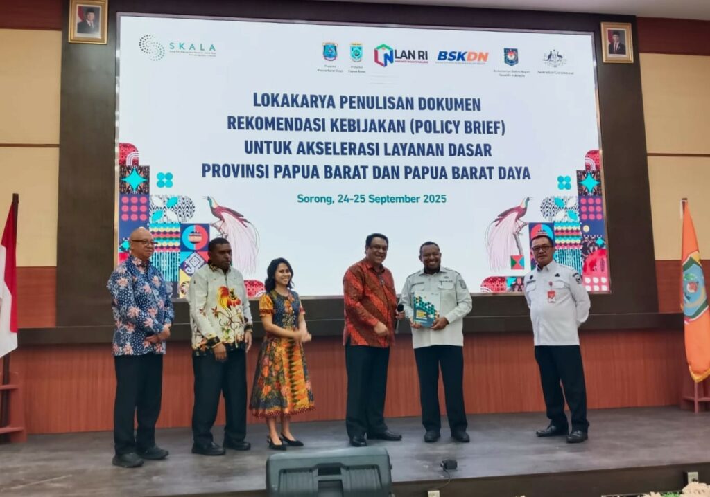 Pemerintah Provinsi Papua Barat dan Papua Barat Daya memperkuat kapasitas aparatur dan pemangku kepentingan dalam merumuskan kebijakan berbasis bukti melalui Lokakarya Penulisan Rekomendasi Kebijakan (Policy Brief) di Sorong, 24 September 2025. Kegiatan ini melibatkan pemerintah daerah, akademisi, dan masyarakat sipil dengan dukungan BSKDN Kemendagri, LAN RI, serta Program SKALA. Fokus lokakarya mencakup Standar Pelayanan Minimal (SPM), Pengelolaan Keuangan Publik (PFM), ...